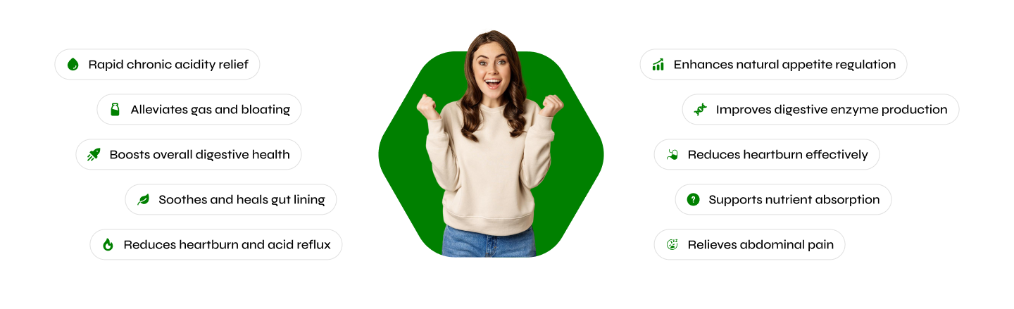 Quickly soothes acidity and supports regular bowel movements naturally.